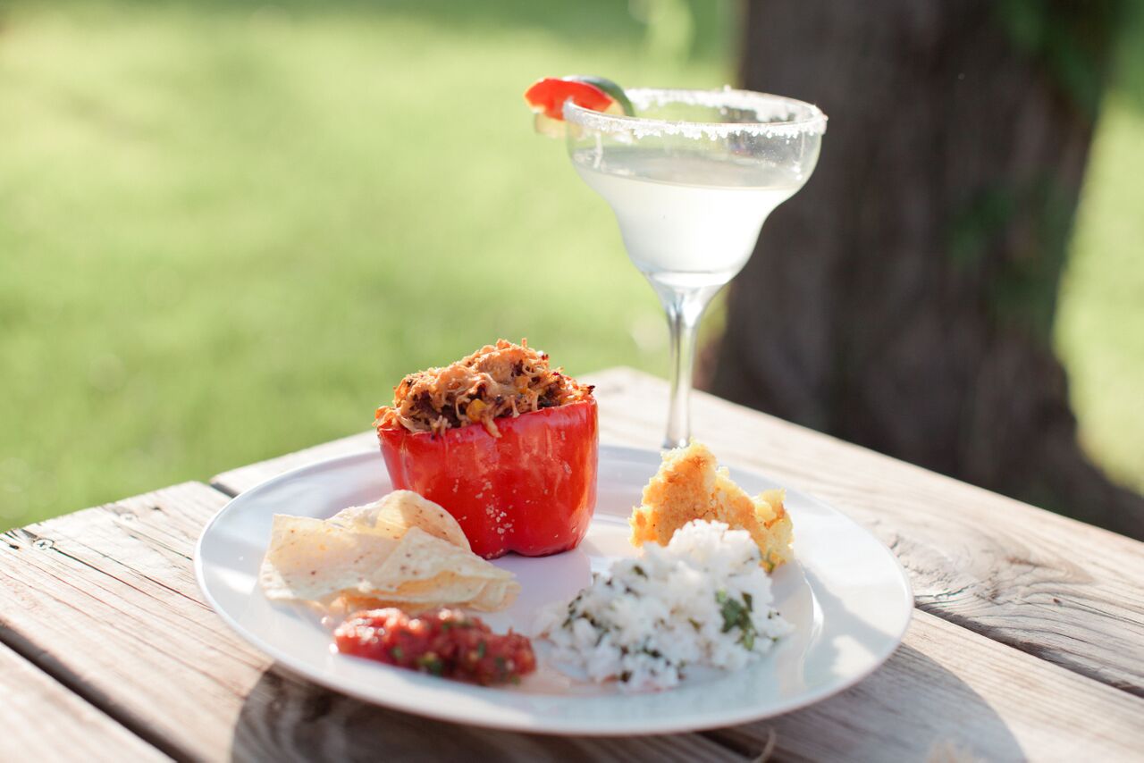 For the article I chose grilled stuffed red peppers, homemade salsa, and a tequila sangria. Of course we had other dishes to compliment the meal, but these were the staples for the article. I wanted the people I love most to share in this event, so I invited our longtime friends Josh and Eryn and their kids. My good friend John is a photographer so he agreed to do the photos for me. My daughter Liz did my makeup, and everyone pitched in to help with the set up. Makes my heart swell to know they all cared enough about me to help make this day perfect.