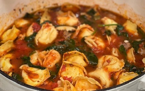 What’s better on a chilly evening than a hearty soup? I couldn’t wait to make tortellini soup, because our furnace is out, and it is so easy and delicious. The only side dish you will need is some good Italian bread slathered with butter and garlic. Try this soup if you haven’t decided what you would like to have for supper tonight. And especially if you are in an area experiencing cold temperatures. It will warm your bones up!